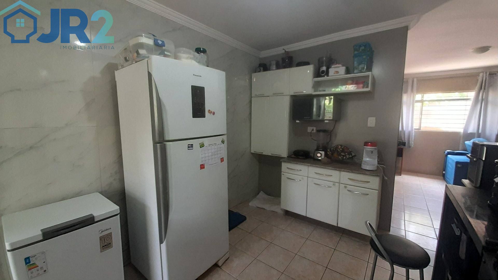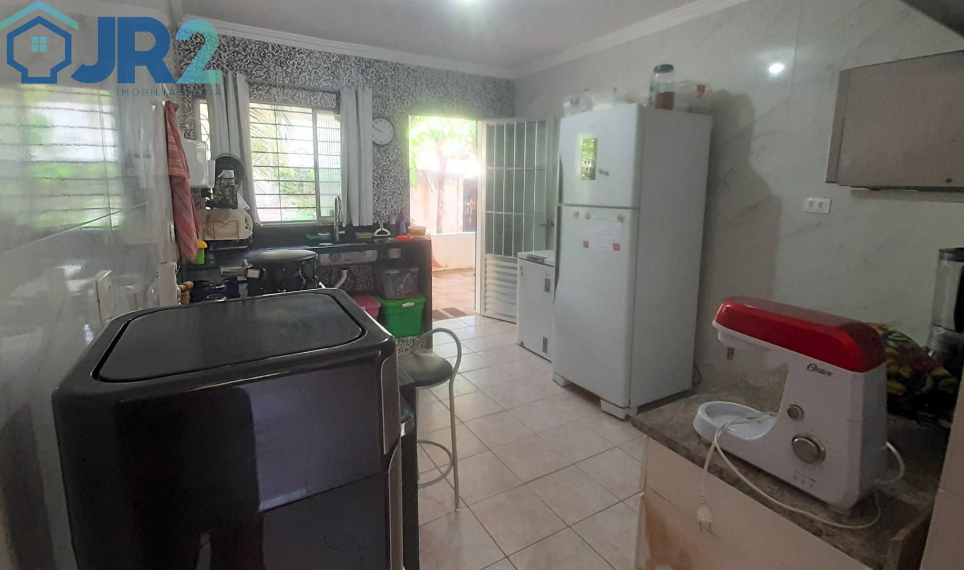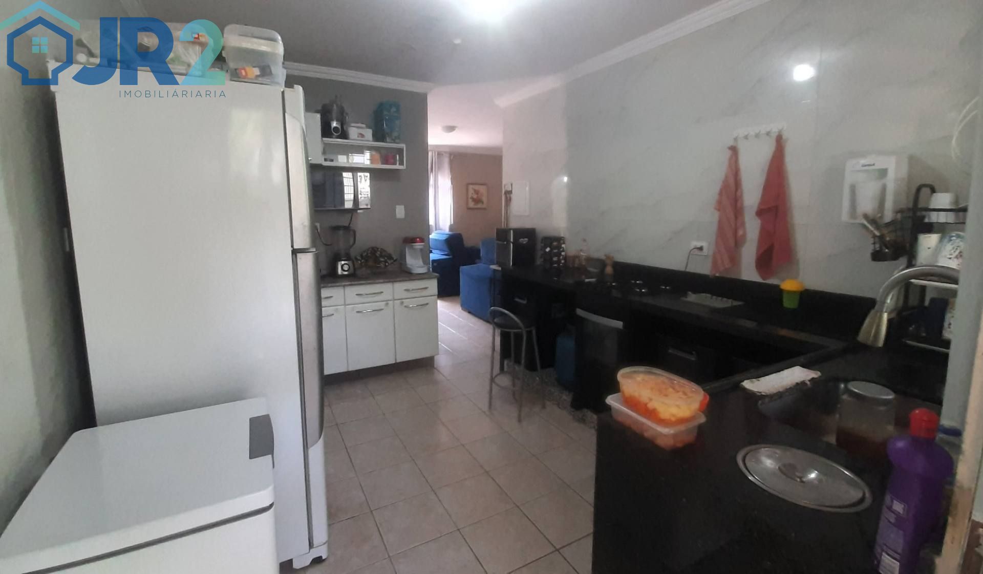 A cozinha é um dos destaques do imóvel, equipada com bancada em granito e acabamento em azulejo e porcelanato nas paredes, garantindo um visual moderno e de fácil manutenção.